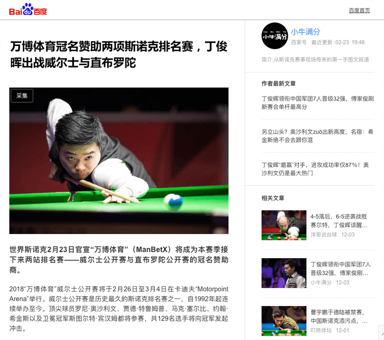 斯诺克脸书推荐。 查看更多>>